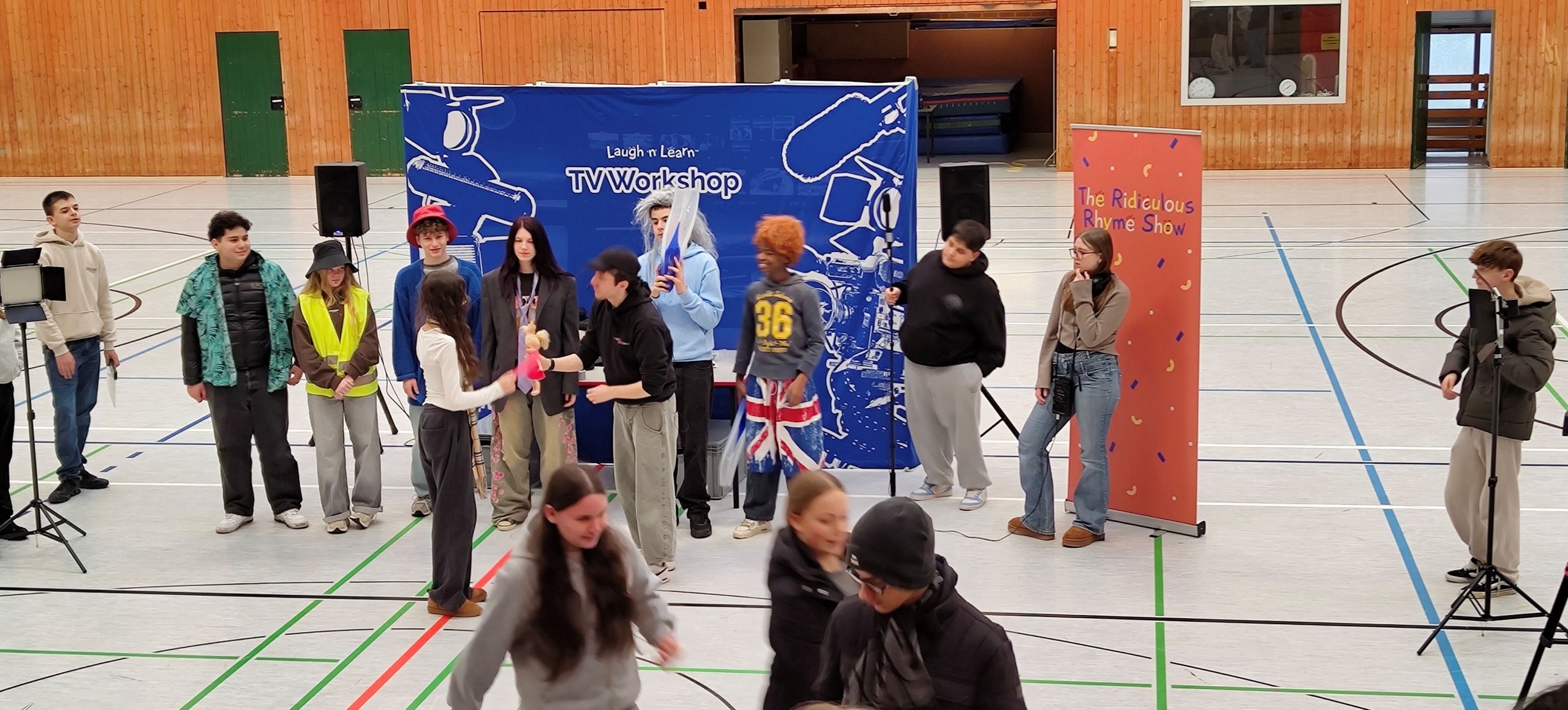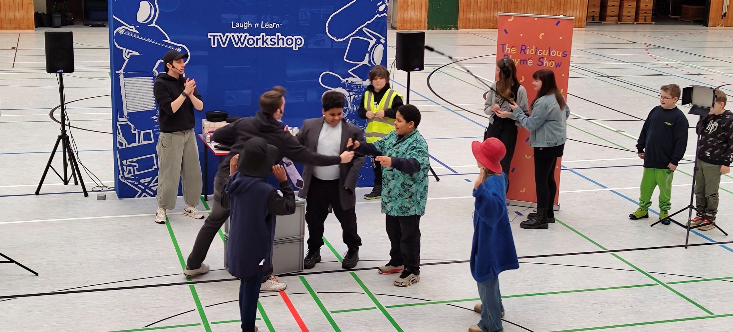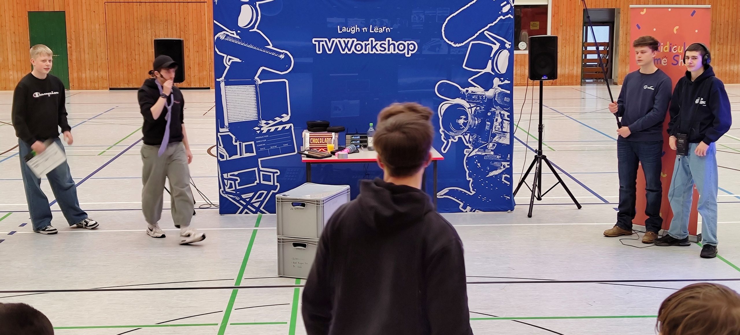 Unsere Schule hatte am Aschermittwoch die Gelegenheit, an einem spannenden TV-Workshop von Laugh n Learn teilzunehmen. In drei aufeinanderfolgenden Workshops nahmen alle Klassen unserer Schule an diesem besonderen Projekt teil.