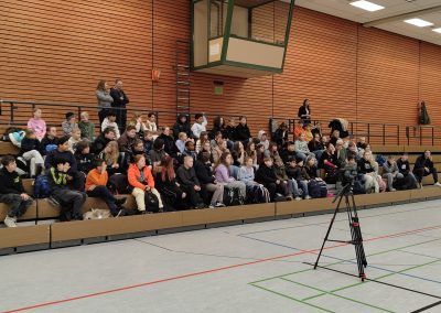 Auch für das leibliche Wohl war gesorgt: Die Besucherinnen und Besucher konnten sich bei Kaffee und Kuchen stärken, zudem wurden Bratwurst, Pommes und verschiedene Getränke angeboten. Die gemütliche Atmosphäre lud zum Austausch ein und bot den Schülerinnen und Schülern die Möglichkeit, ihre Erlebnisse ausführlich zu schildern.