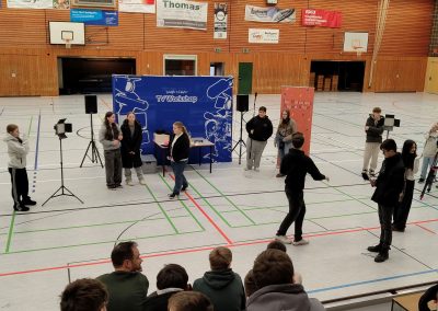 Dabei verwandelte sich unsere Schule für kurze Zeit in ein echtes Fernsehstudio. Die Schülerinnen und Schüler erhielten einen abwechslungsreichen Einblick in die Welt der Medienproduktion und konnten selbst aktiv werden – sowohl vor als auch hinter der Kamera. Ob Schauspiel, Regie, Kamera oder Ton: Alle waren mit großem Engagement und Begeisterung dabei – und das alles in englischer Sprache!