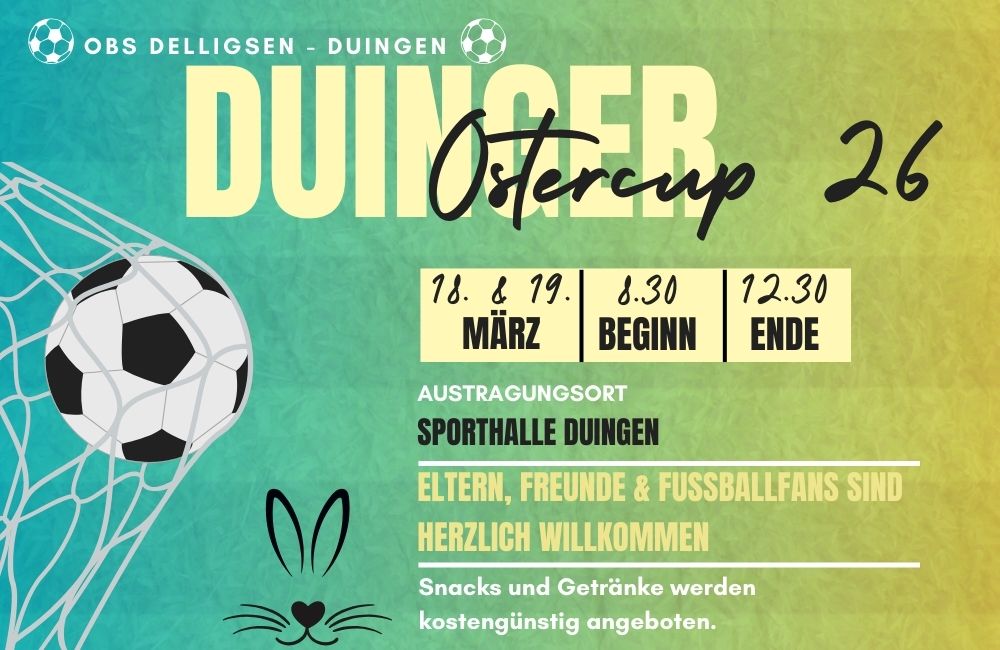 Der Duinger Ostercup war nicht nur ein sportlicher Erfolg, sondern auch eine großartige Gelegenheit, die Gemeinschaft und den Teamgeist zwischen den Schulen zu stärken. Die Organisatoren und alle Beteiligten können stolz auf das Gelingen des Turniers zurückblicken und freuen sich schon auf die kommende Ausgabe im nächsten Jahr.